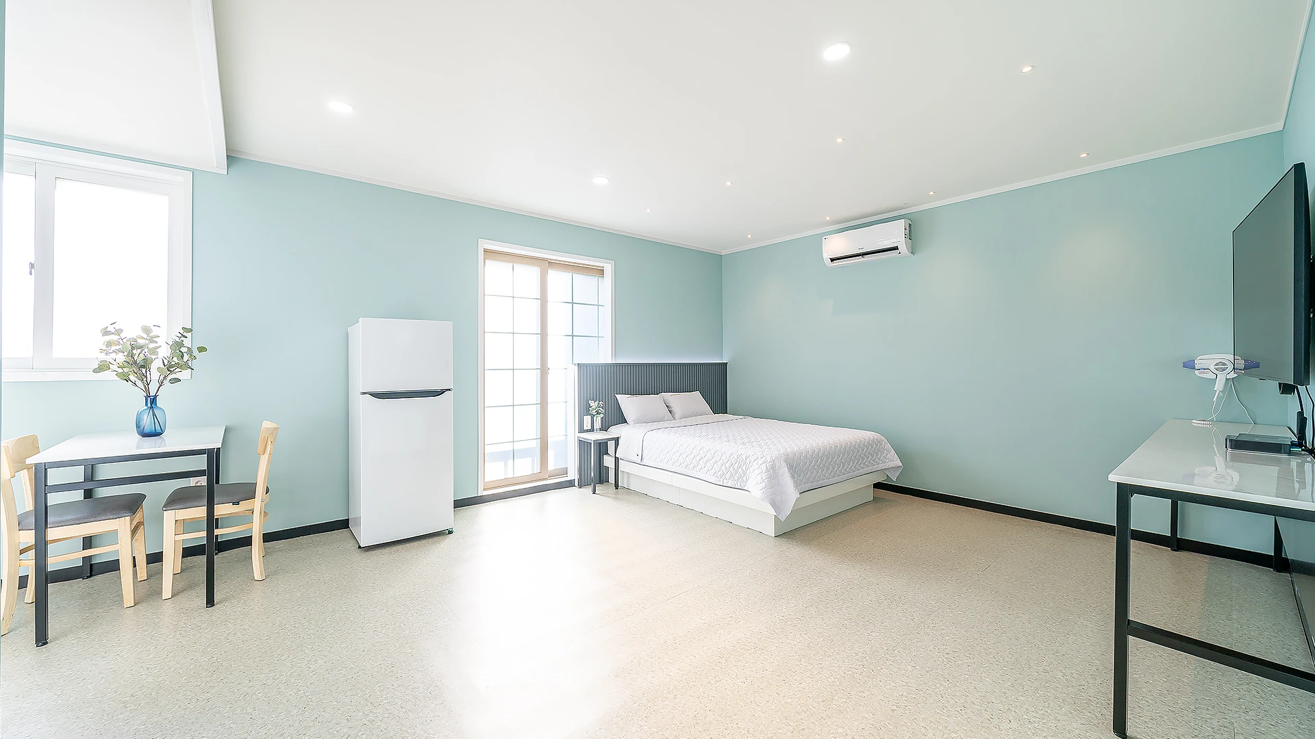 - 집기품목 : TV, 금연, 냉장고, 드라이기, 린스, 바디워시, 샴푸, 에어컨, 와이파이, 인덕션, 전기밥솥, 취사시설/도구, 치약, 타월, VOD, 욕실용품