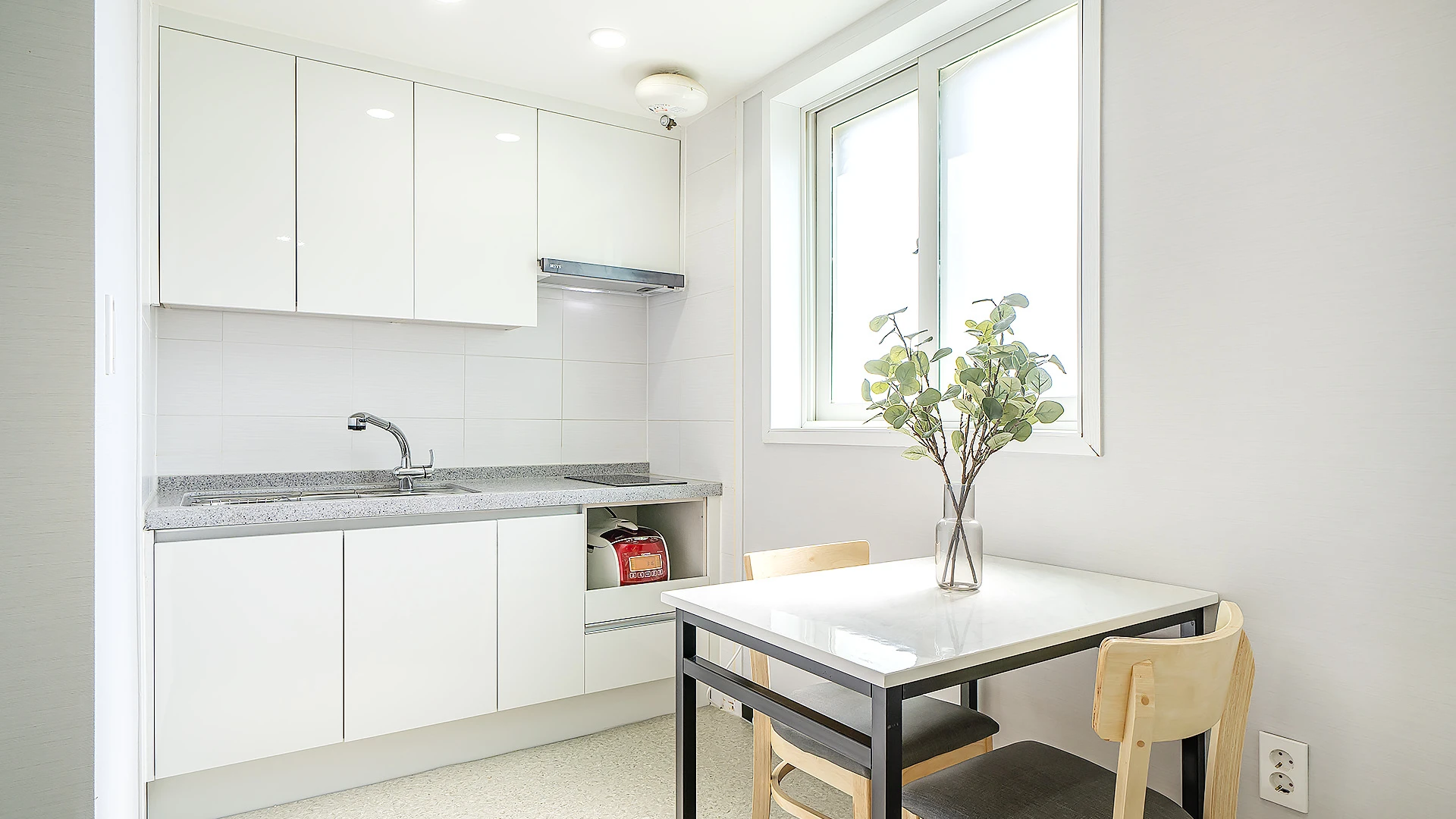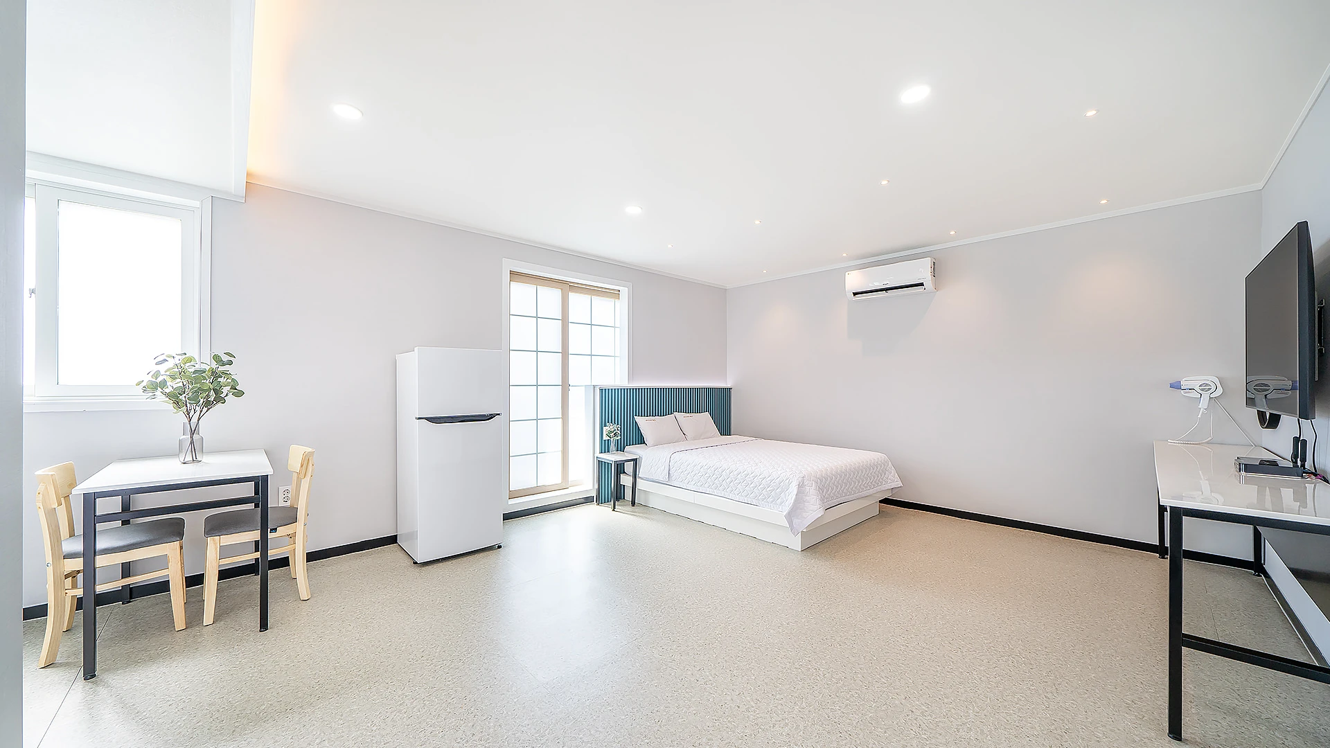 - 집기품목 : TV, 금연, 냉장고, 드라이기, 린스, 바디워시, 샴푸, 에어컨, 와이파이, 인덕션, 전기밥솥, 취사시설/도구, 치약, 타월, VOD, 욕실용품